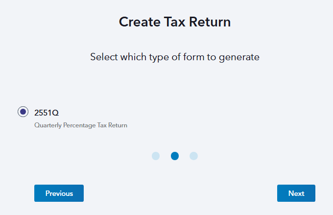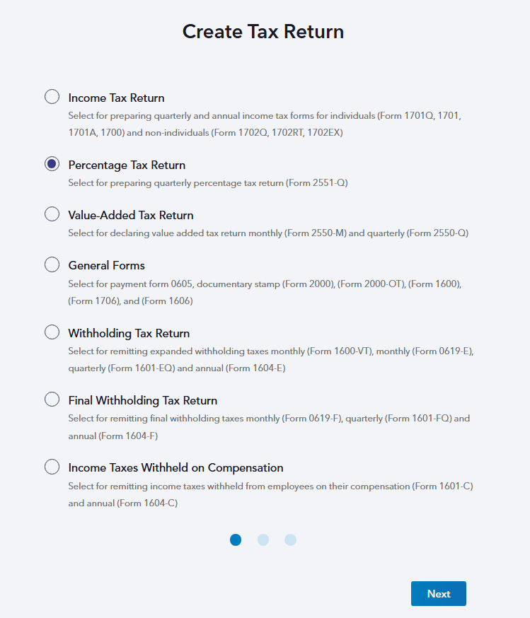 STEP 2: Select Percentage Tax Return and hit Next.