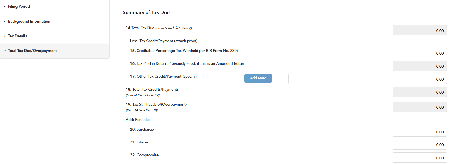 STEP 7: The last part is the Summary of Tax Due. This section will show you the list of certain items and amounts for various categories that are entered and impact your return.