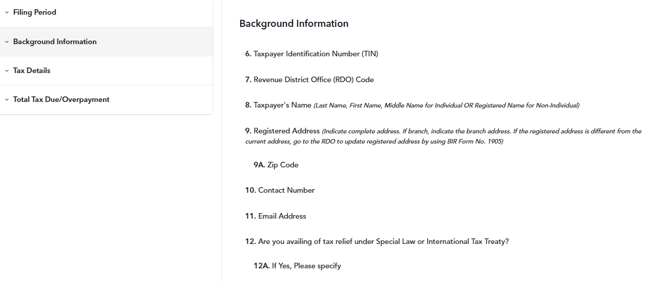 STEP 5: In the second section of the form, enter all background information properly based on your BIR Certificate of Registration (COR/Form 2303).