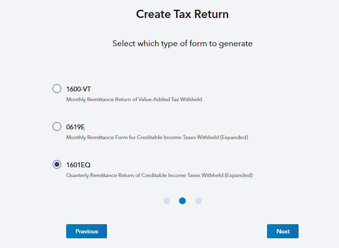 Note: Please keep in mind that filing an attachment with your BIR Form 1601-EQ will incur an additional fee on top of the service fee per generation of forms.