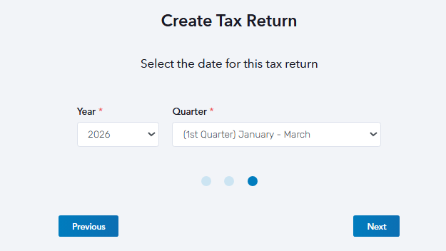 STEP 4: Select the date of the transaction covered in this report. Choose from the Year and Quarter drop-down buttons, then click Next.