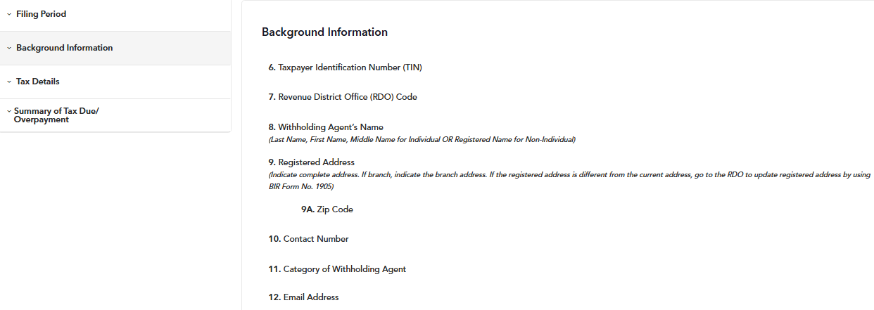 STEP 5: In the second section of the form, enter all background information properly based on your BIR Certificate of Registration (COR/Form 2303).