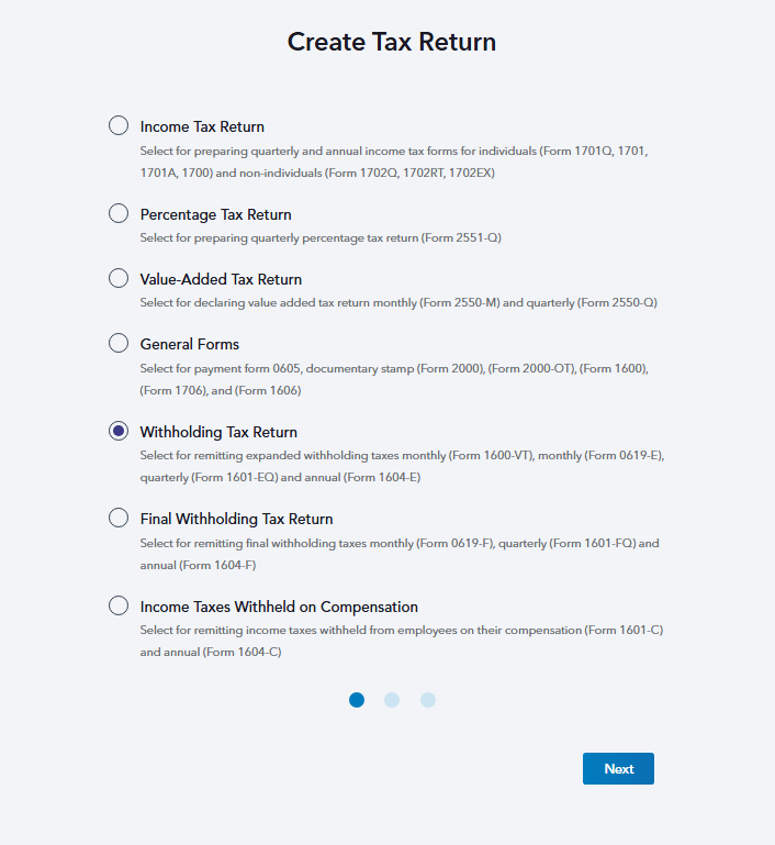 STEP 2: Select Withholding Tax Return and hit Next.