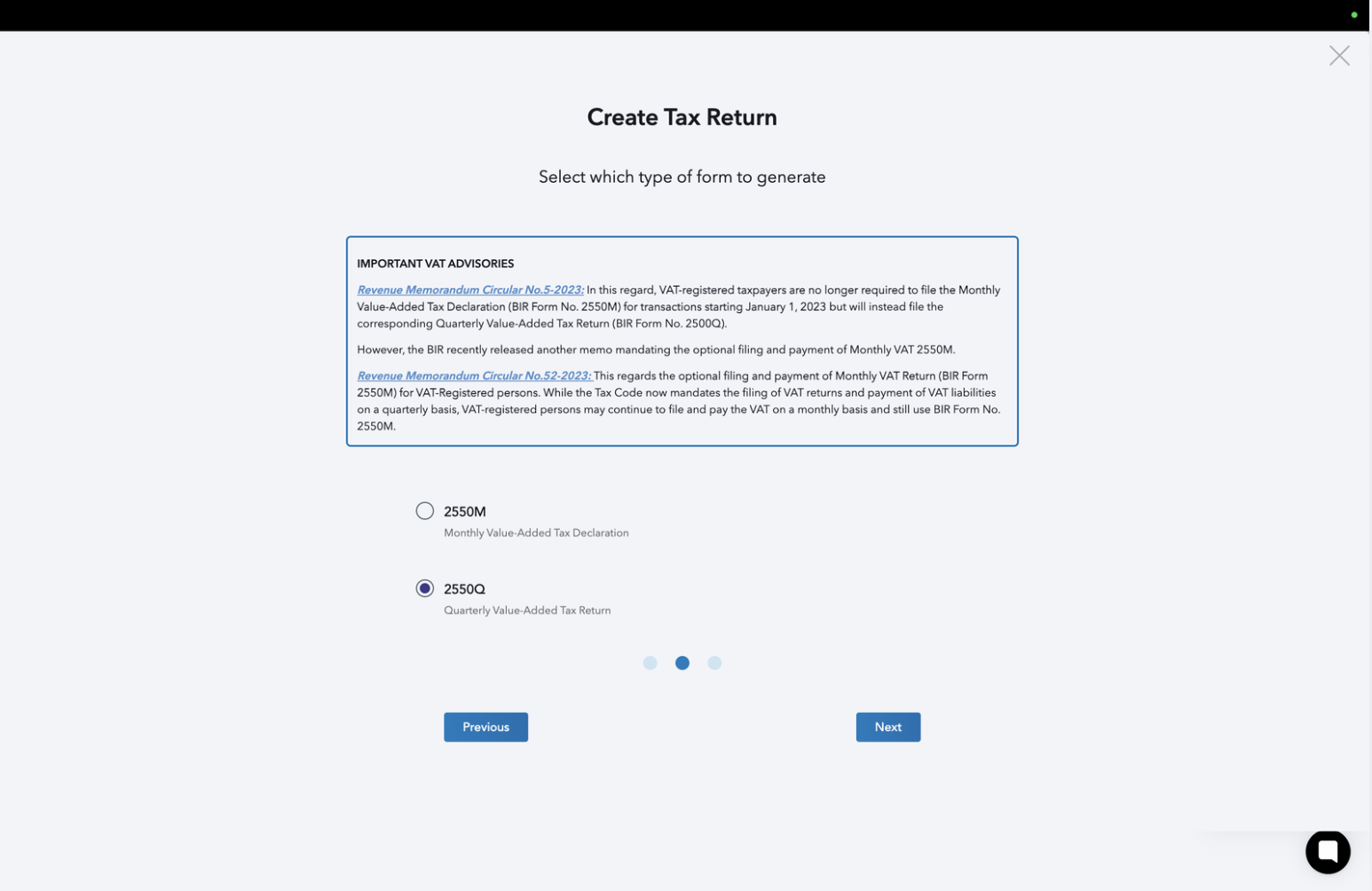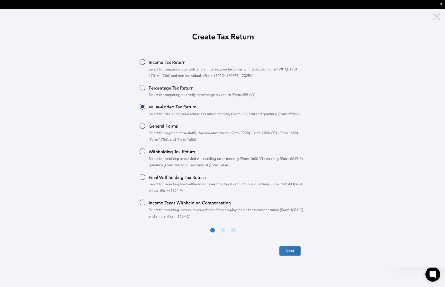 STEP 2: Choose the return you wish to generate.