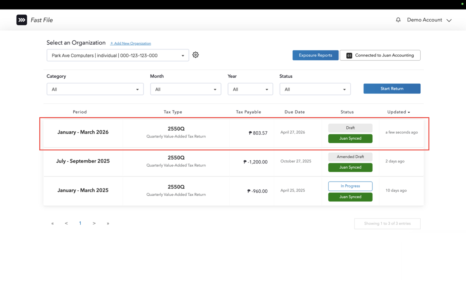 ii. Click the Start Return button.