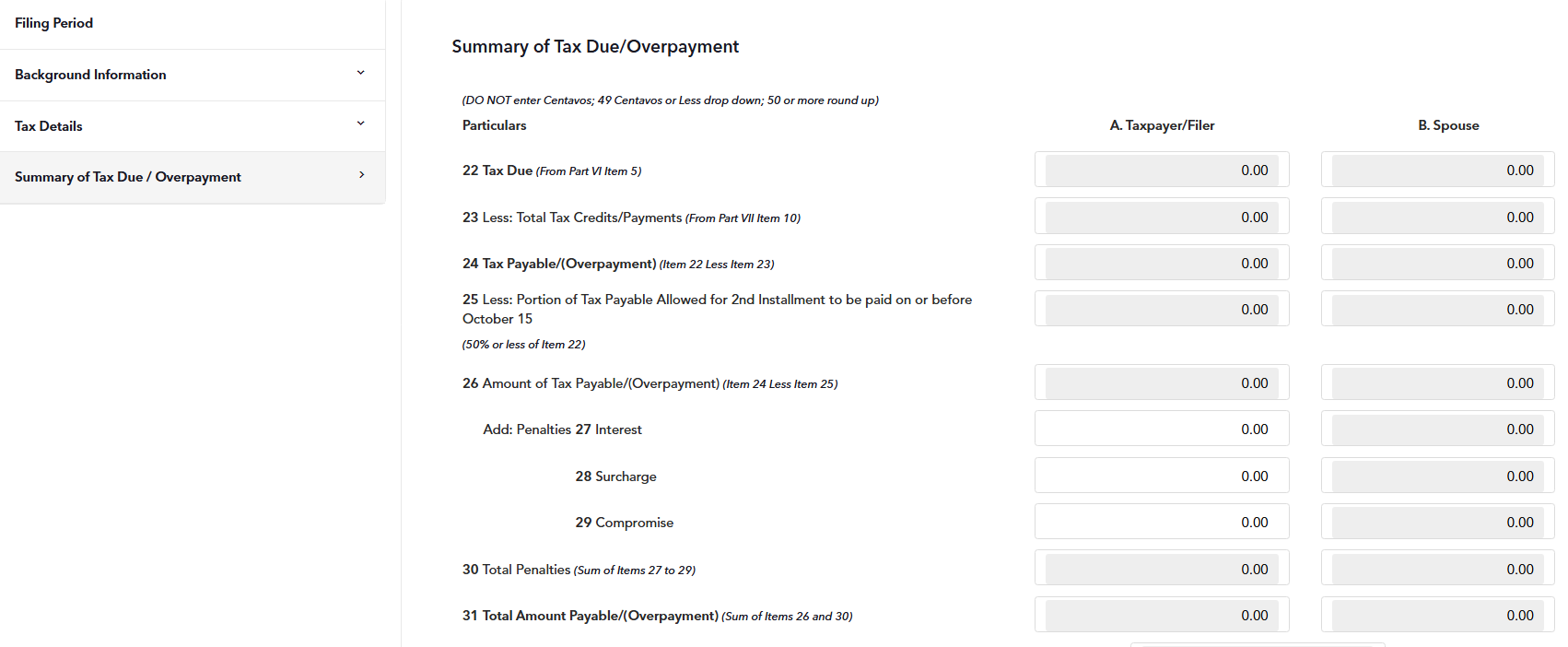 STEP 8: The Summary of Income Tax Due will show you the list of certain items and amounts for various categories that are entered and impact your return.