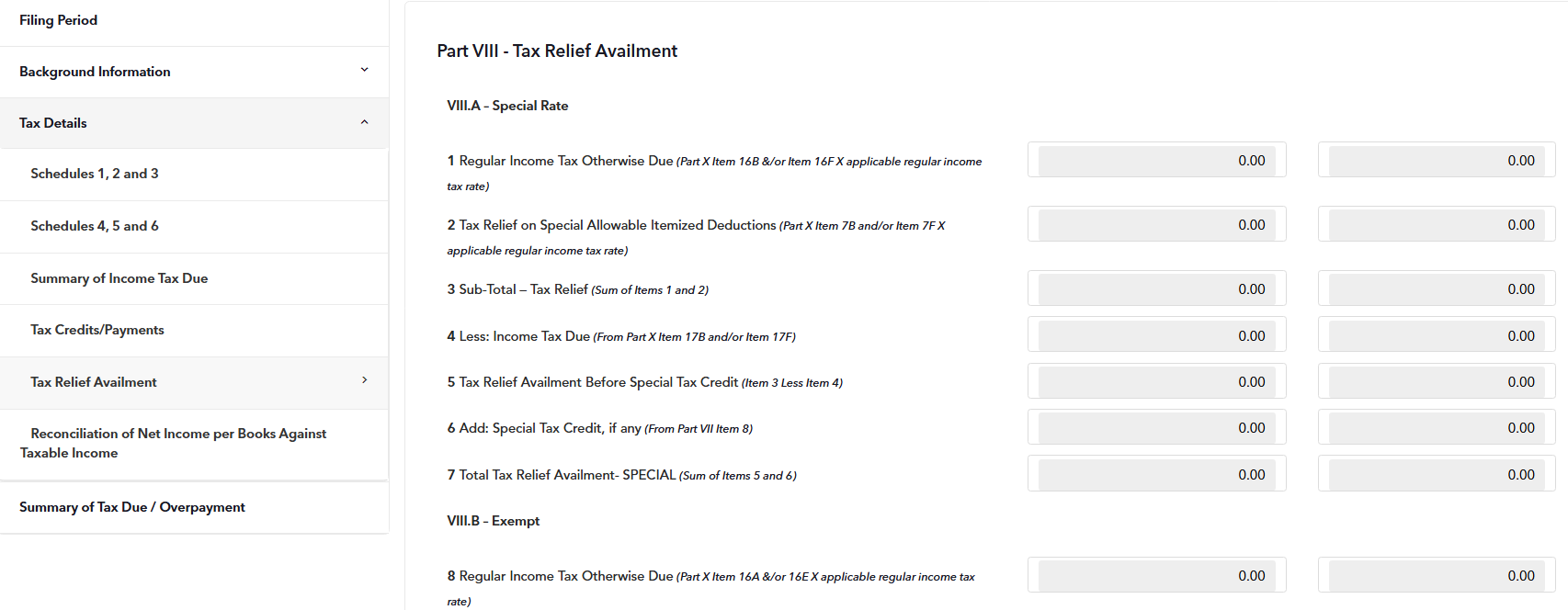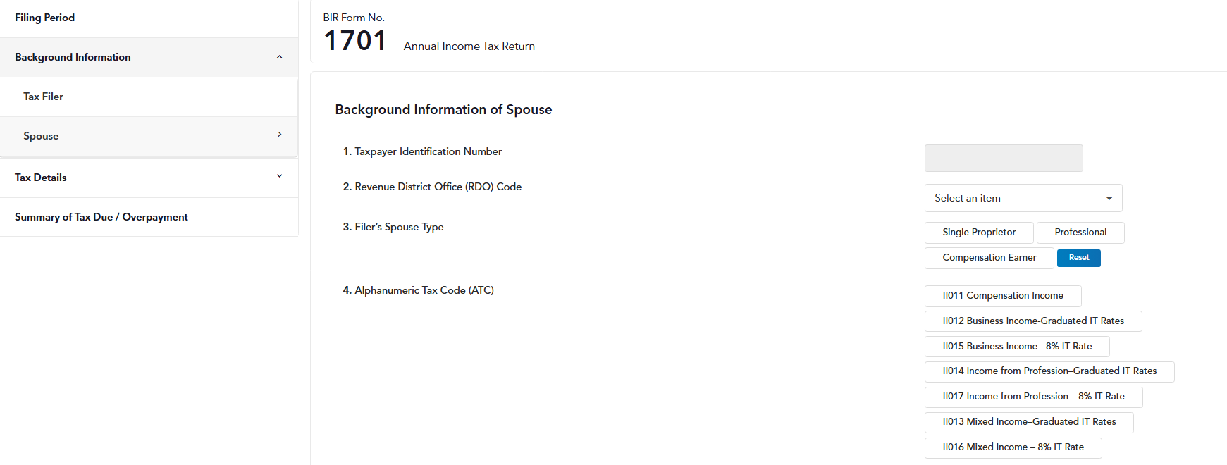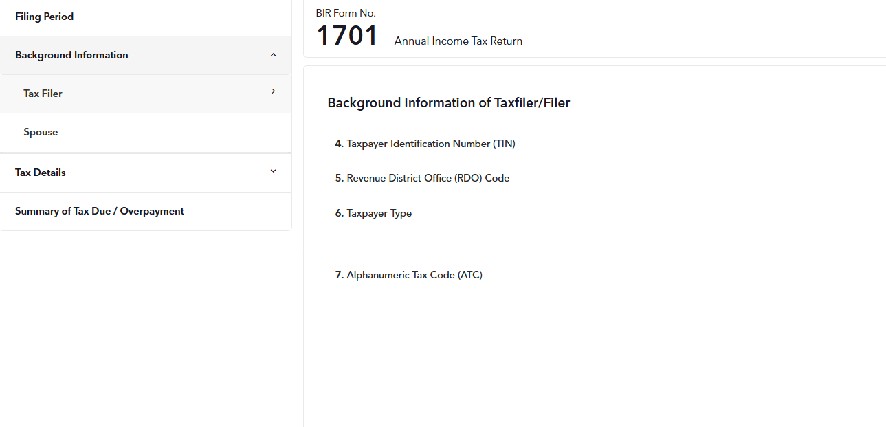 Note: If your income is tax-exempt or subject to a special or preferential rate, please use eBIR forms to file your tax return instead. Fast File is yet to support these types of items.