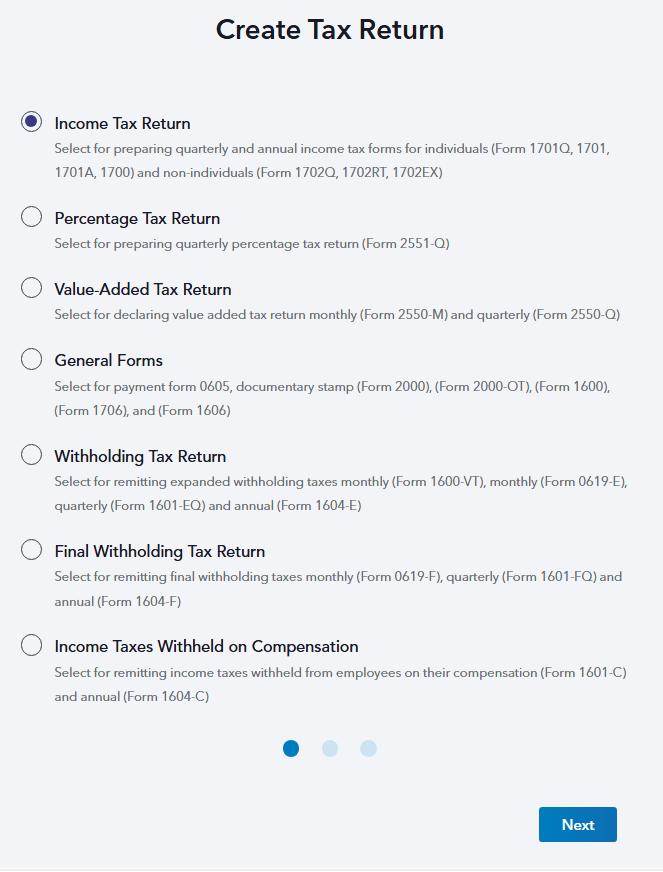 STEP 2: Select Income Tax Return and hit Next.