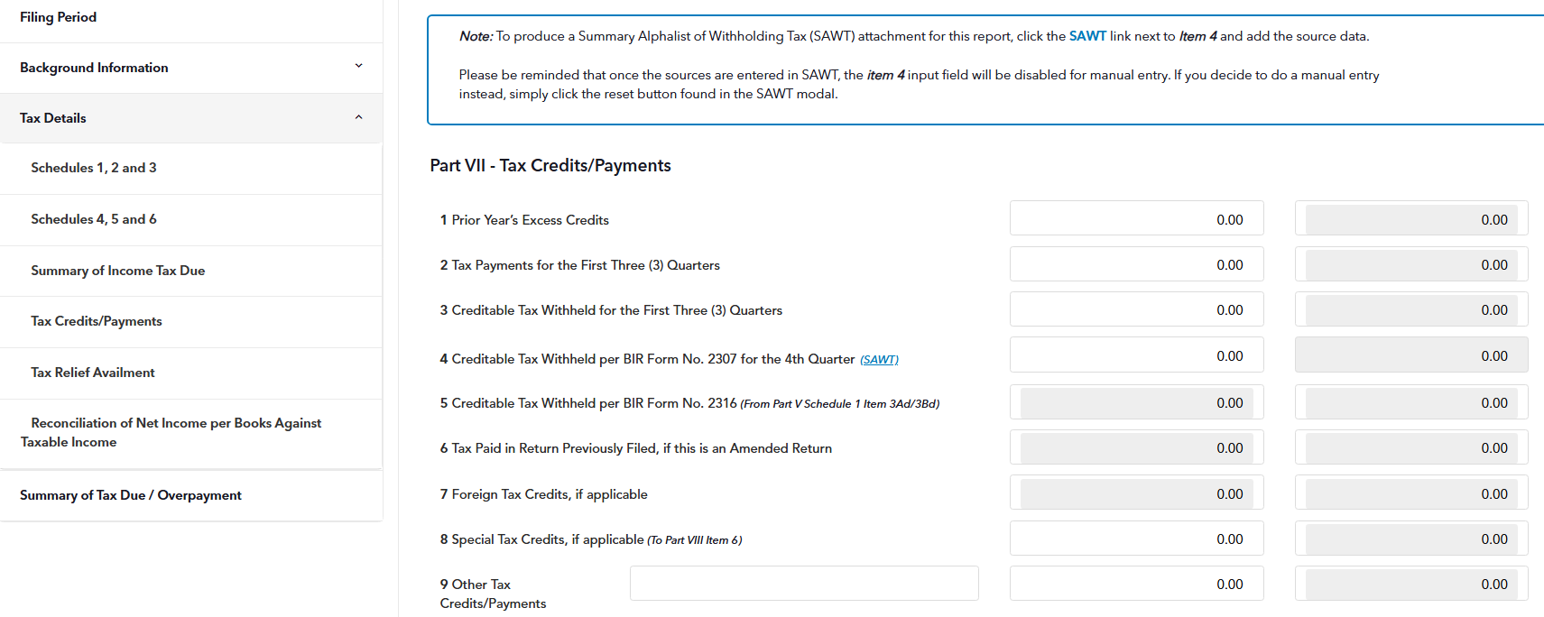 Please be reminded that once the sources are entered in SAWT, the item 58 input field will be disabled for manual entry. If you decide to do a manual entry instead, simply click the reset button found in the SAWT modal.