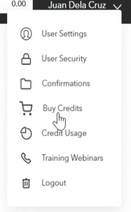 STEP 1: From your Fast File dashboard, click on your Account Name found on the upper-right part of the page and click Buy Credits.