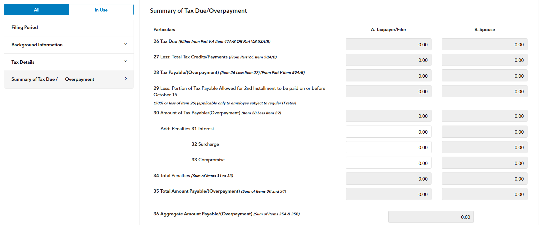 STEP 7: The Summary of Tax Due/Overpayment section is also pre-populated with the exact information included in your actual tax form. That is why you need to go through all of the sections to make sure you that are filing an accurate return.