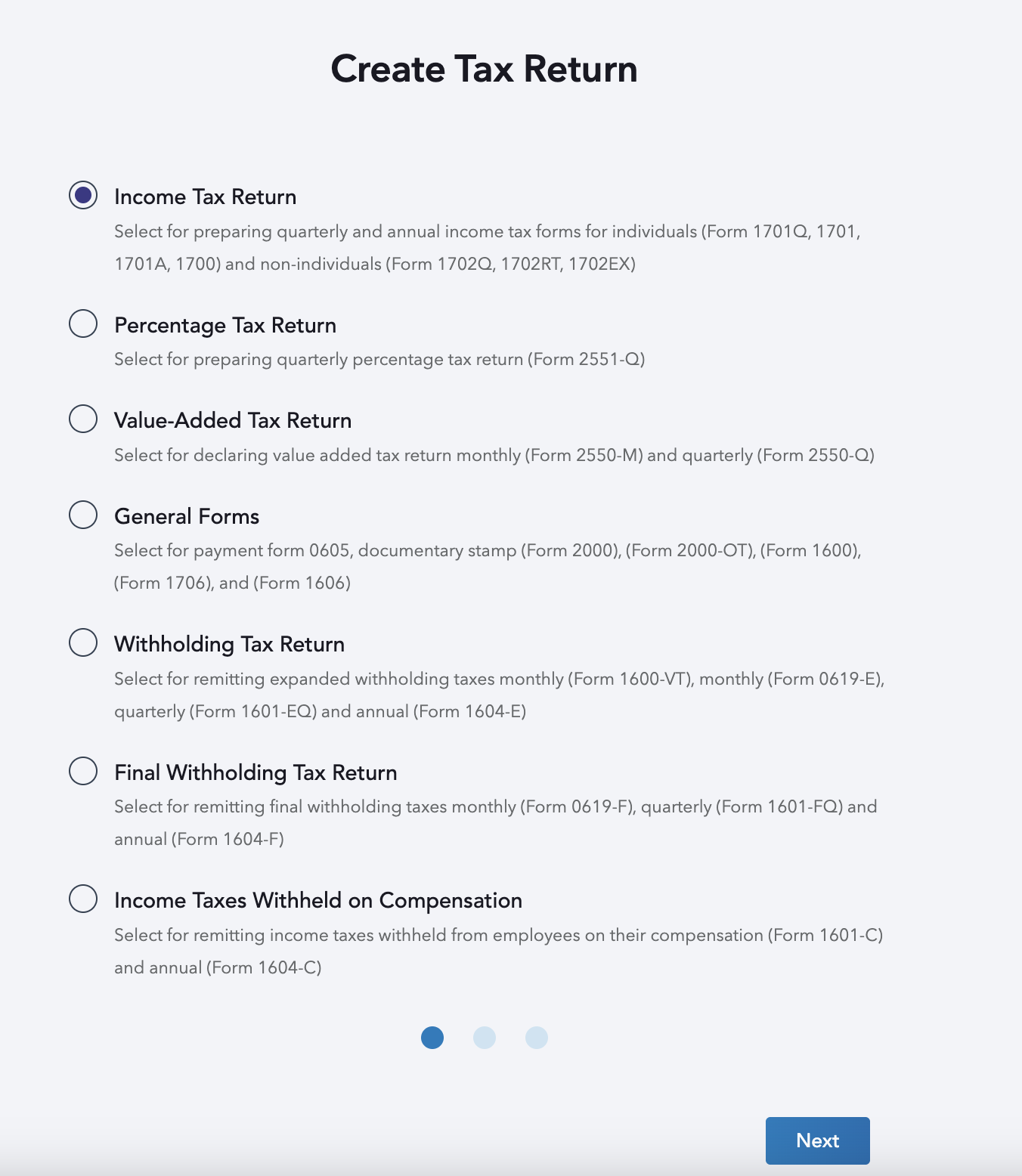STEP 2: Select Income Tax Return and hit Next.