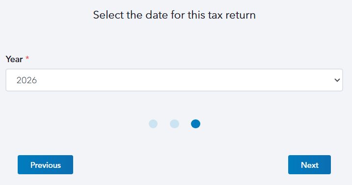 STEP 4: Select the date of the transaction covered in this report. Choose from the Year drop-down list then click Next.
