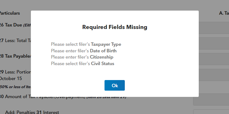 Once you're done filling up the tax form, click the Filing Options button located on the upper-right part of the page to allow the platform to determine if there are fields that have been overlooked.