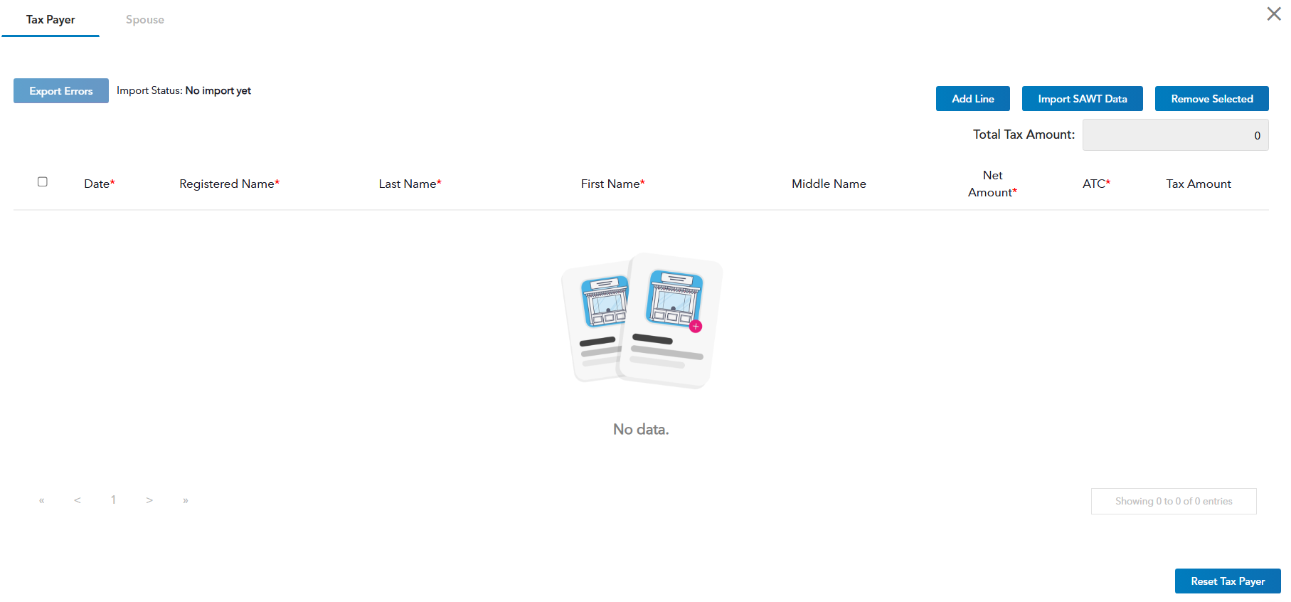 G. Reset Taxpayer- this allows you to remove all the data inside the modal and start afresh.