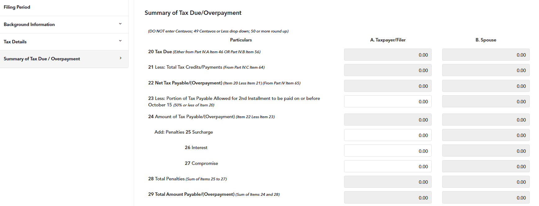 STEP 9: The Summary of Tax Due section is also pre-populated with the exact information included in your actual tax form. That is why you need to go through all of the sections to make sure you that are filing an accurate return.